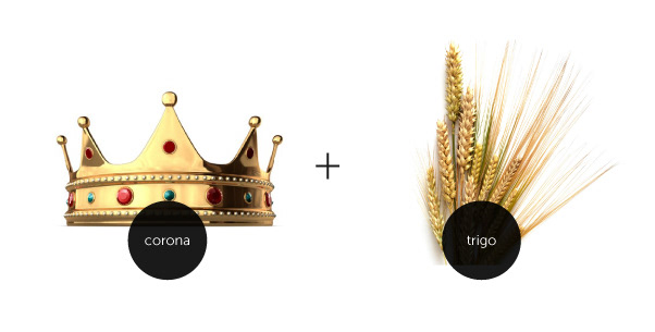 La representacion visual de una corona hecha de trigo, evoca al concepto de riqueza en la humildad y la abundancia de alimento, mas que en el poder del dinero.